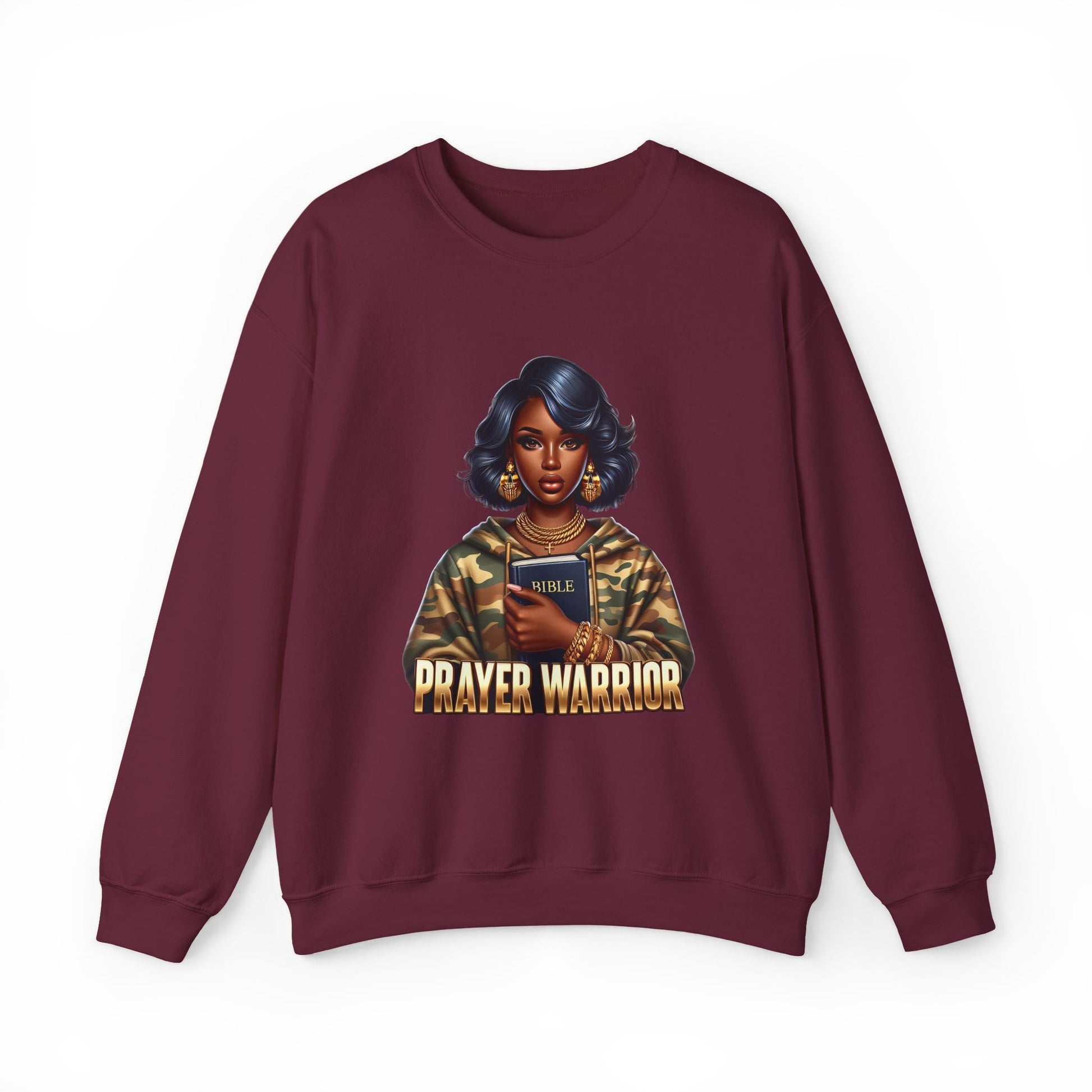 Wrap yourself in quiet strength with this crewneck sweatshirt that carries a message — not shouted, but steady. A poised Black woman holds a Bible close to her chest, camo jacket layered around her shoulders and the words “PRAYER WARRIOR” grounding the image. It reads like a promise: resilience, devotion, and everyday courage. The soft, medium-heavy cotton-poly blend hugs you with warmth while the clean crew neckline and classic fit keep the silhouette effortless and wearable. Wear it on slow Sunday mornings, during evening prayers, or as a calm emblem while running errands. The embroidered-capable placement and quality print mean the artwork stays vivid, while details like tear-away labels and durable double-needle stitching keep comfort and longevity front and center. This sweatshirt belongs in wardrobes that value faith-forward style and confident understatement.